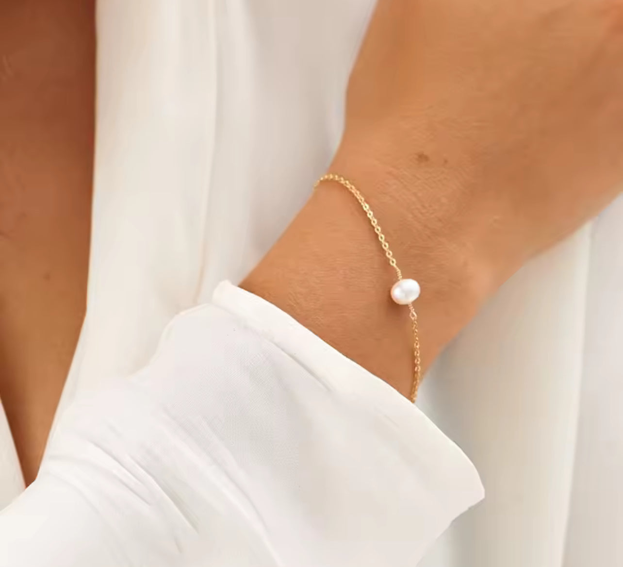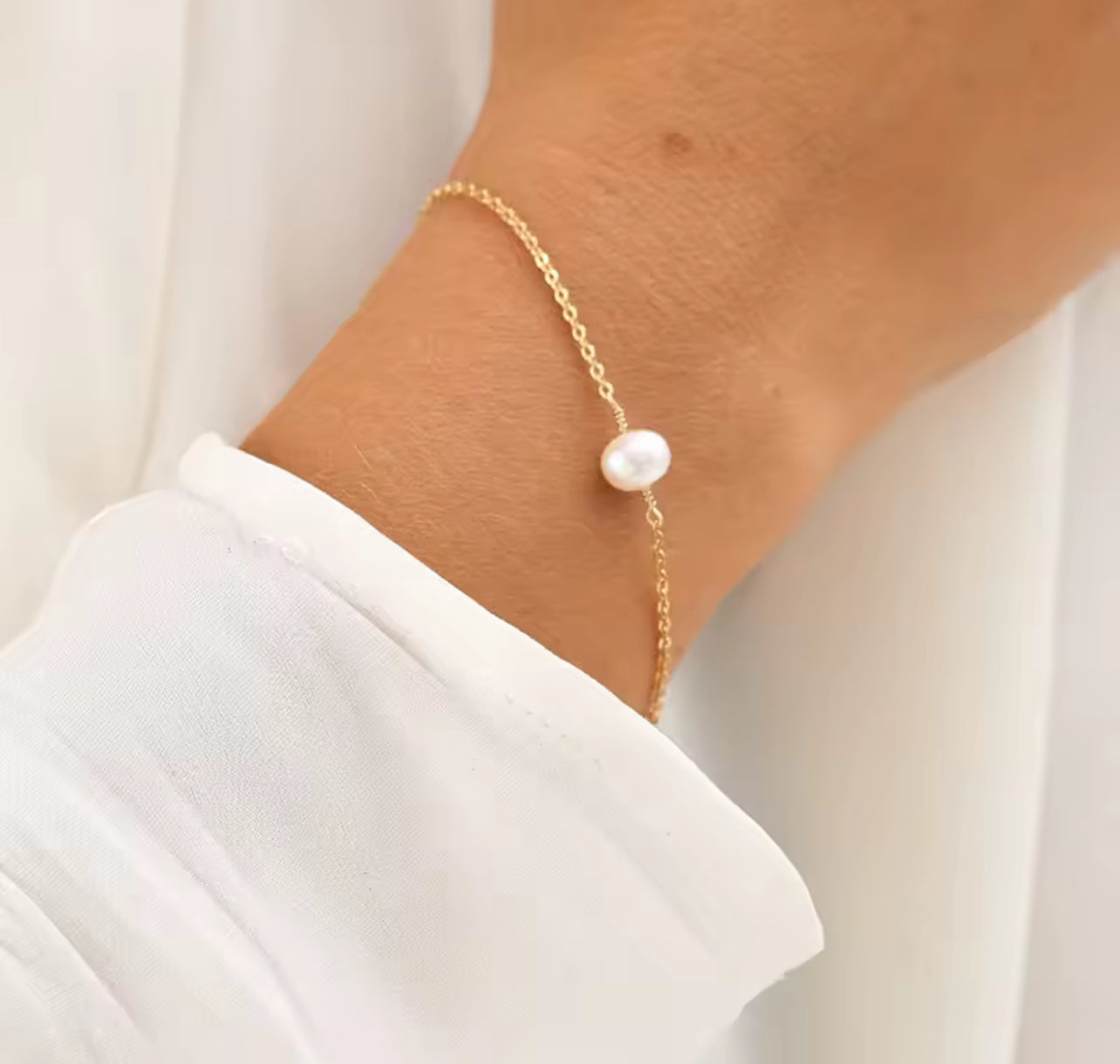 Expertly crafted and elegant, our 14K Gold Natural White Pearl Womens Bracelet is the perfect addition to any outfit. Made with 14k gold filled material and finished with a natural white pearl, this bracelet exudes sophistication and class. Available in four sizes and packaged in a lovely gift box.